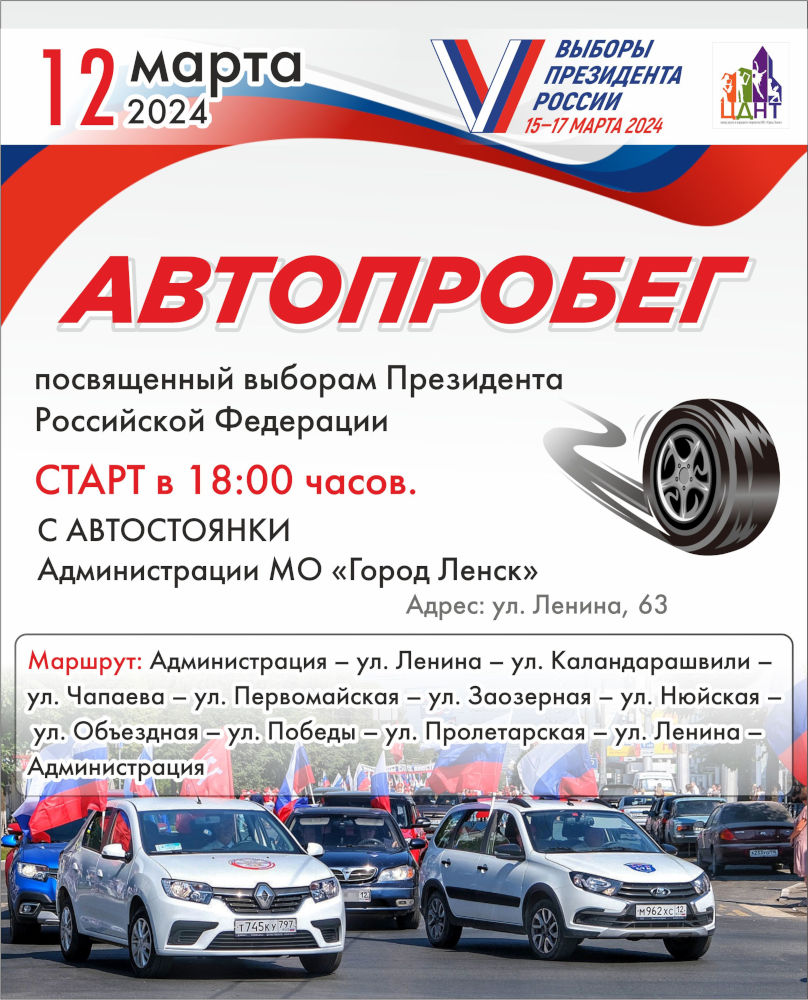 12 марта 2024 года состоится АВТОПРОБЕГ, посвящённый выборам Президента Российской Федерации.