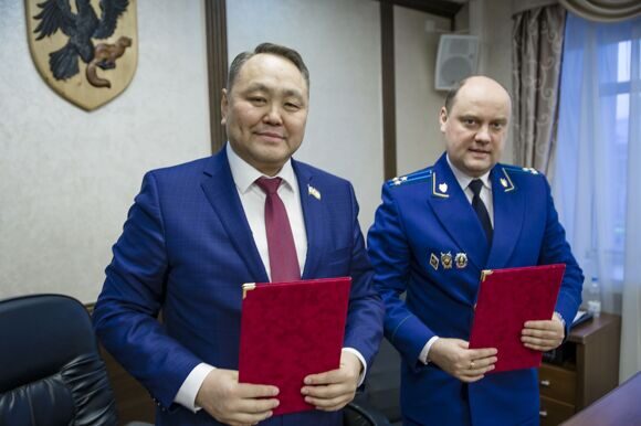 Председатель Якутской городской Думы Альберт Семенов и прокурор города Якутска Виктор Умеренко подписали соглашение о взаимодействии и сотрудничестве.