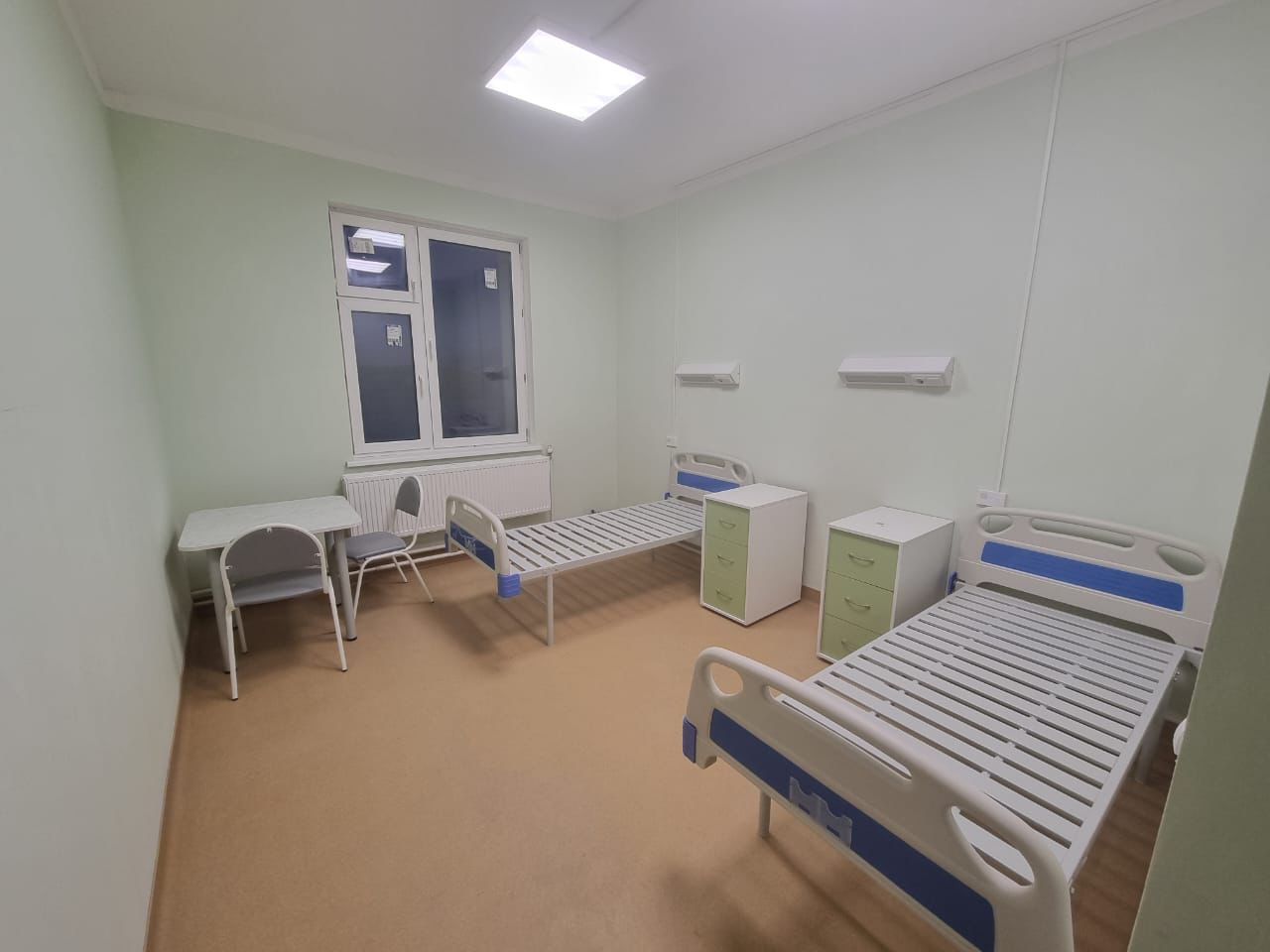 На втором этаже основного блока — терапевтическое отделение с детским блоком на 12 коек и хирургия с родильным блоком на десять коек.