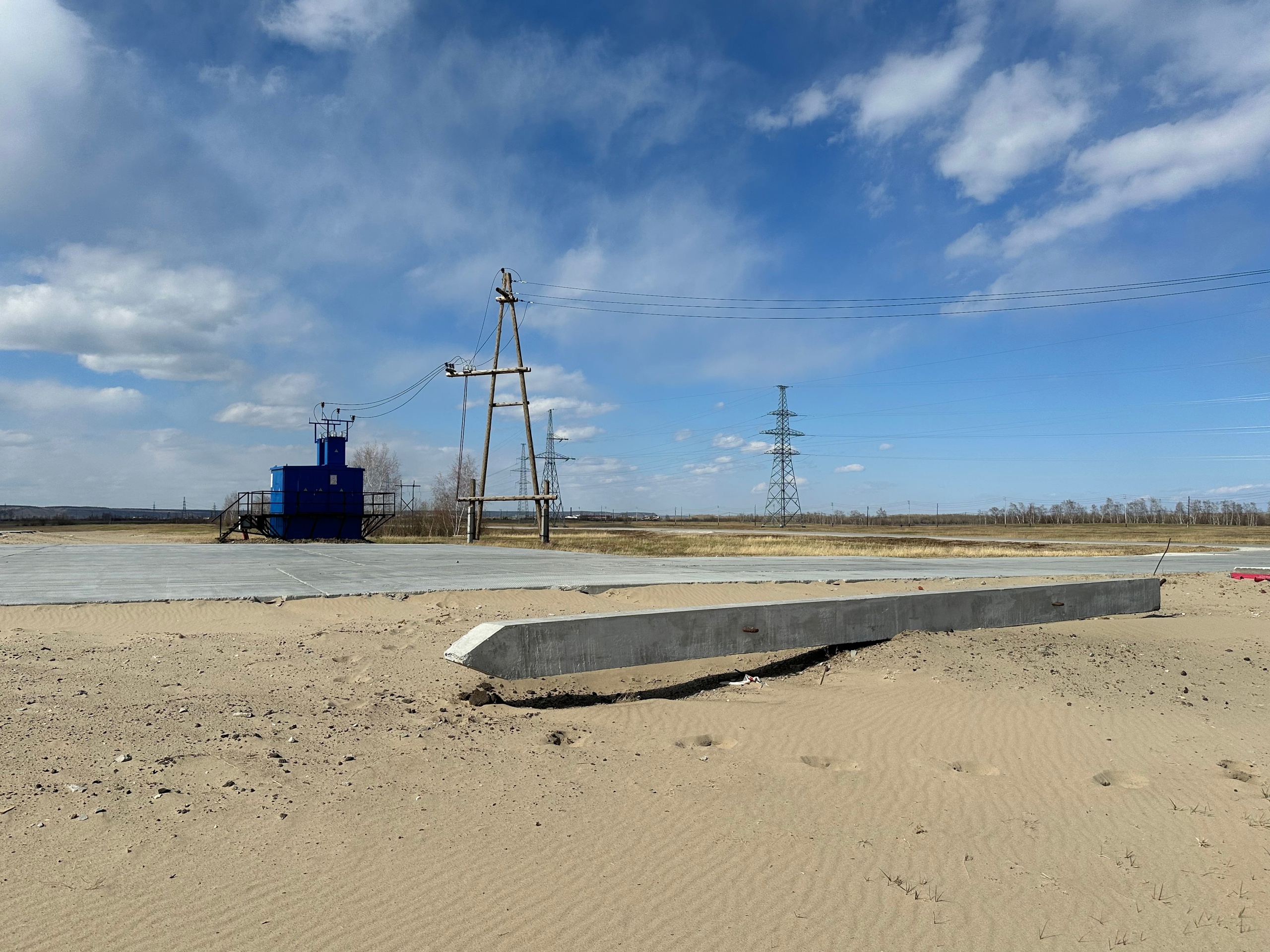 Уложенные дорожные плиты лежат на месте. Это примерно 800-900 квадратных метров. Песком отсыпана небольшая территория – около двух гектаров. Установлена трансформаторная подстанция. Но на площадке абсолютно пусто – ни техники, ни рабочих, даже восемь бытовых вагончиков вывезено. В администрации Табаги на мой вопрос ответили, что уже давно не видели никаких телодвижений на объекте.