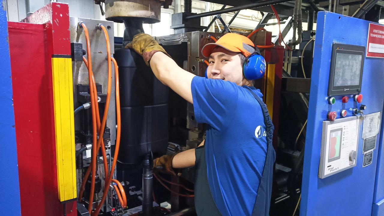 «На заводе канистры производятся из полиэтилена низкого давления высокой плотности с добавлением электропроводящего компаунда путем экструзионно-выдувного формования»,- описал процесс изготовления тары для розлива топлива директор Якутской нефтебазы АО «Саханефтегазсбыт» Денис Чуев.