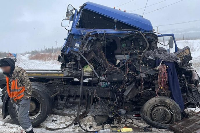 12 апреля на дороге в 613 километрах от Алдана в направлении Нерюнгри случилось серьёзное ДТП. Водителю МАЗа не удалось соблюсти безопасную скорость и дистанцию на обледенелом участке дороги, и он допустил столкновение с грузовиком КамАЗ. Согласно информации от ГИБДД Якутии, пострадавших в аварии нет.
