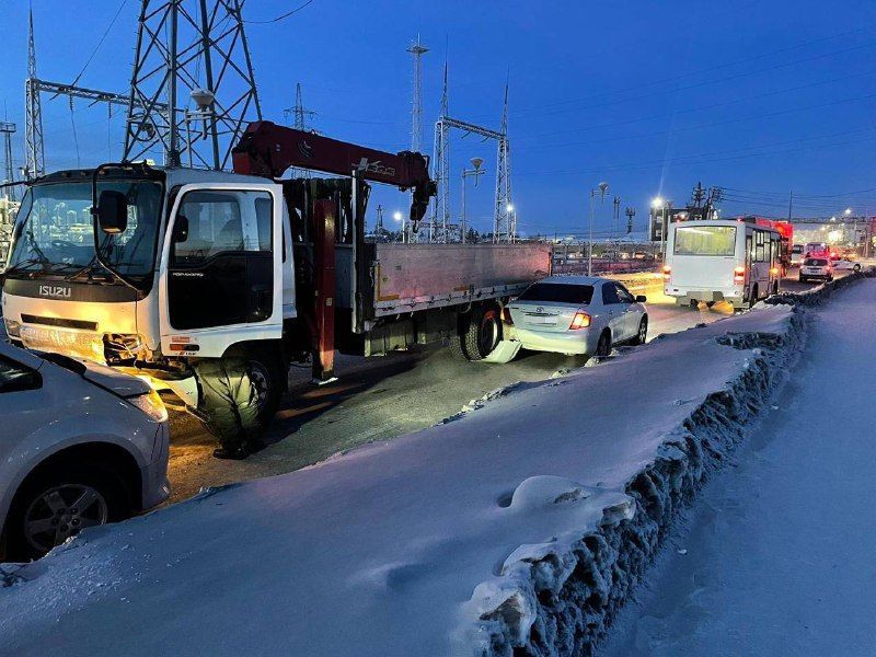 В Якутске грузовик протаранил три машины, пострадали дети