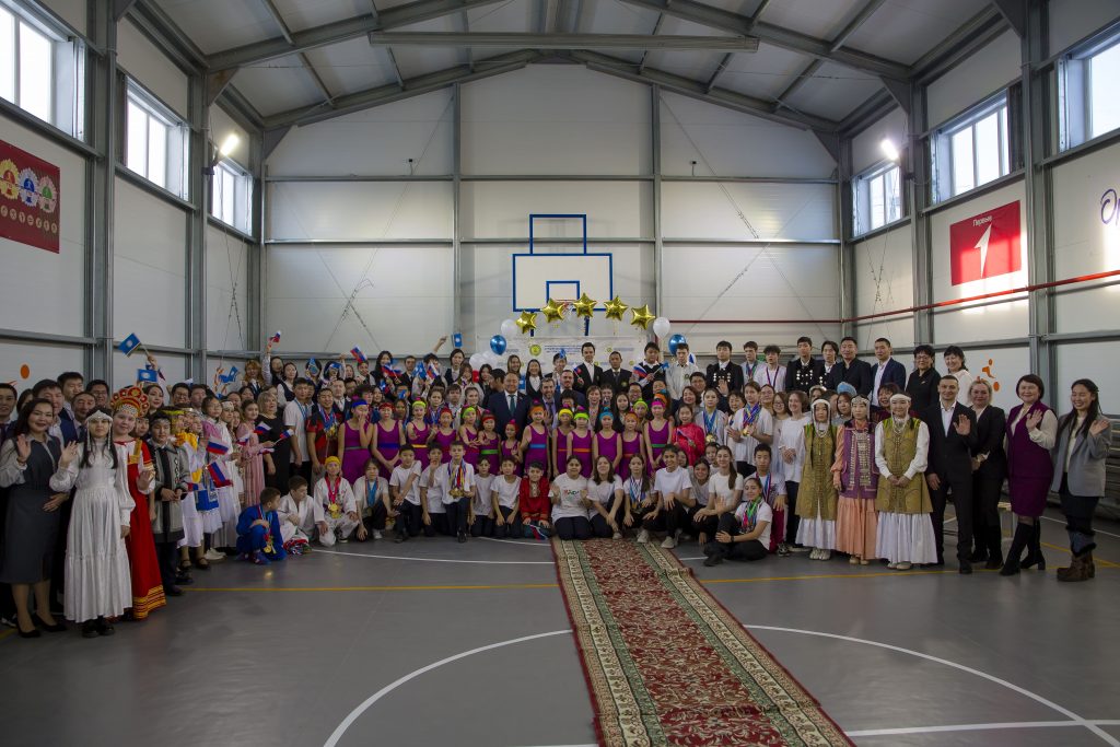 «Данный спортзал построен за счет единой президентской субсидии по развитию Дальневосточного федерального округа благодаря инициативе нашего президента Владимира Владимировича Путина при непосредственном участии полномочного представителя президента на Дальнем Востоке Юрия Петровича Трутнева и главы республики Айсена Сергеевича Николаева.