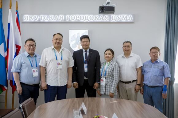 В Якутской городской Думе состоялась встреча спикера гордумы Альберта Семенова с Эрдэнэваанчигом Баатбатаром — руководителем делегации Монголии на VIII Играх «Дети Азии»,