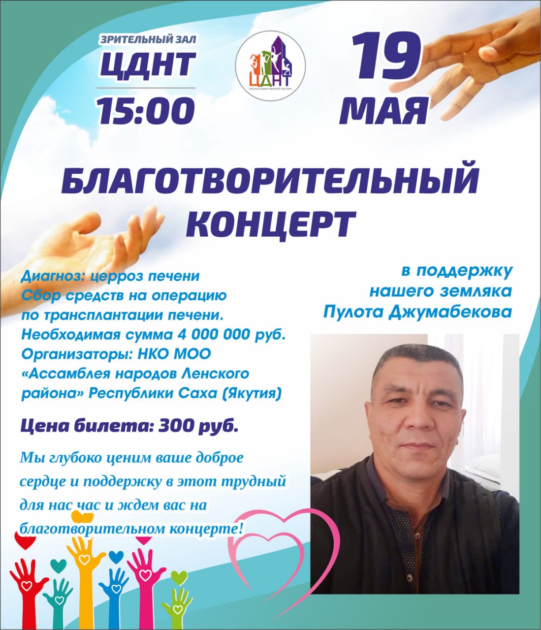 19 мая в 15:00 в ЦДНТ пройдёт благотворительный концерт в поддержку нашего земляка Пулота Джумабекова.