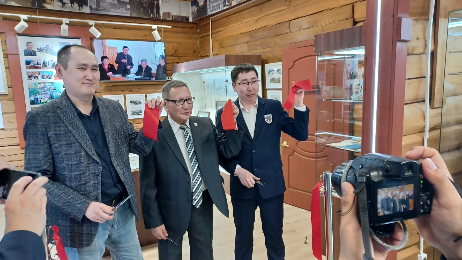 На открытии выставки все присутствующие были приятно удивлены, когда ученый представил свою первую учительницу Варвару Сергеевну ИВАНОВУ-ЗВЕРЕВУ, которая учила его в Тюбяй-Жарханской школе. Представляете, самому 75 лет, а тут еще и его учительница рядом, которой в прошлом году исполнилось 85 лет.