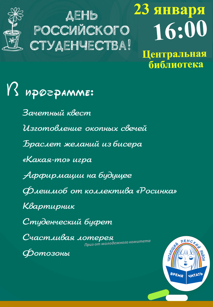 23 января в 16:00 Центральная библиотека приглашает отметить День российского студенчества!