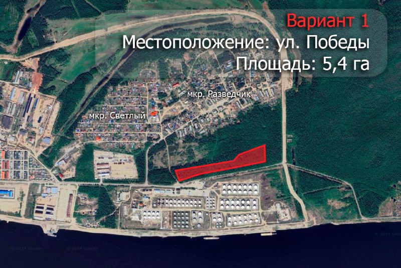 1. Участок по улице Победы (между мкр. Разведчик и Ленской нефтебазой), площадью 5,4 га.