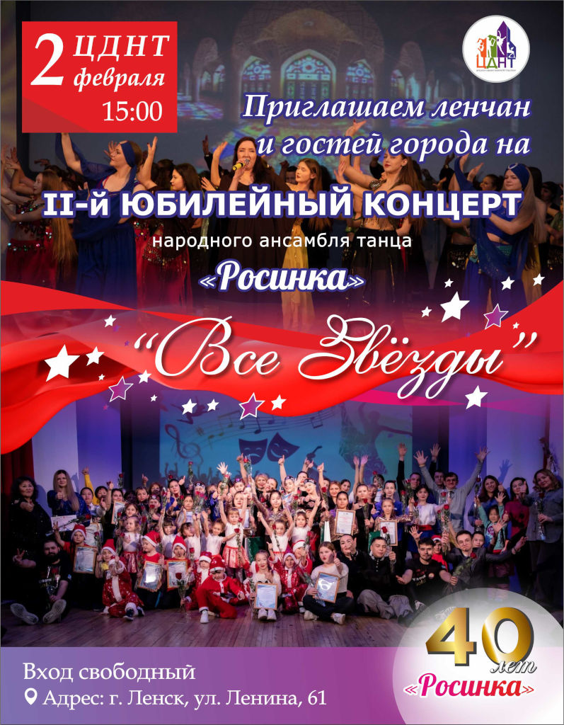 2 февраля в 15:00 ЦДНТ приглашает ленчан и гостей города на II юбилейный концерт народного ансамбля танца «Росинка» «Все Звёзды»!