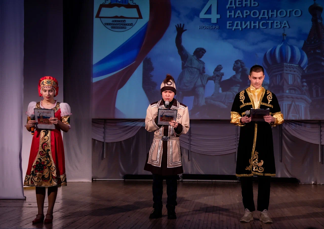 В зрительном зале ЦДНТ 3 ноября состоялся праздничный концерт, посвящённый Дню народного единства, который представили организаторы и воспитанники Ленского технологического техникума.