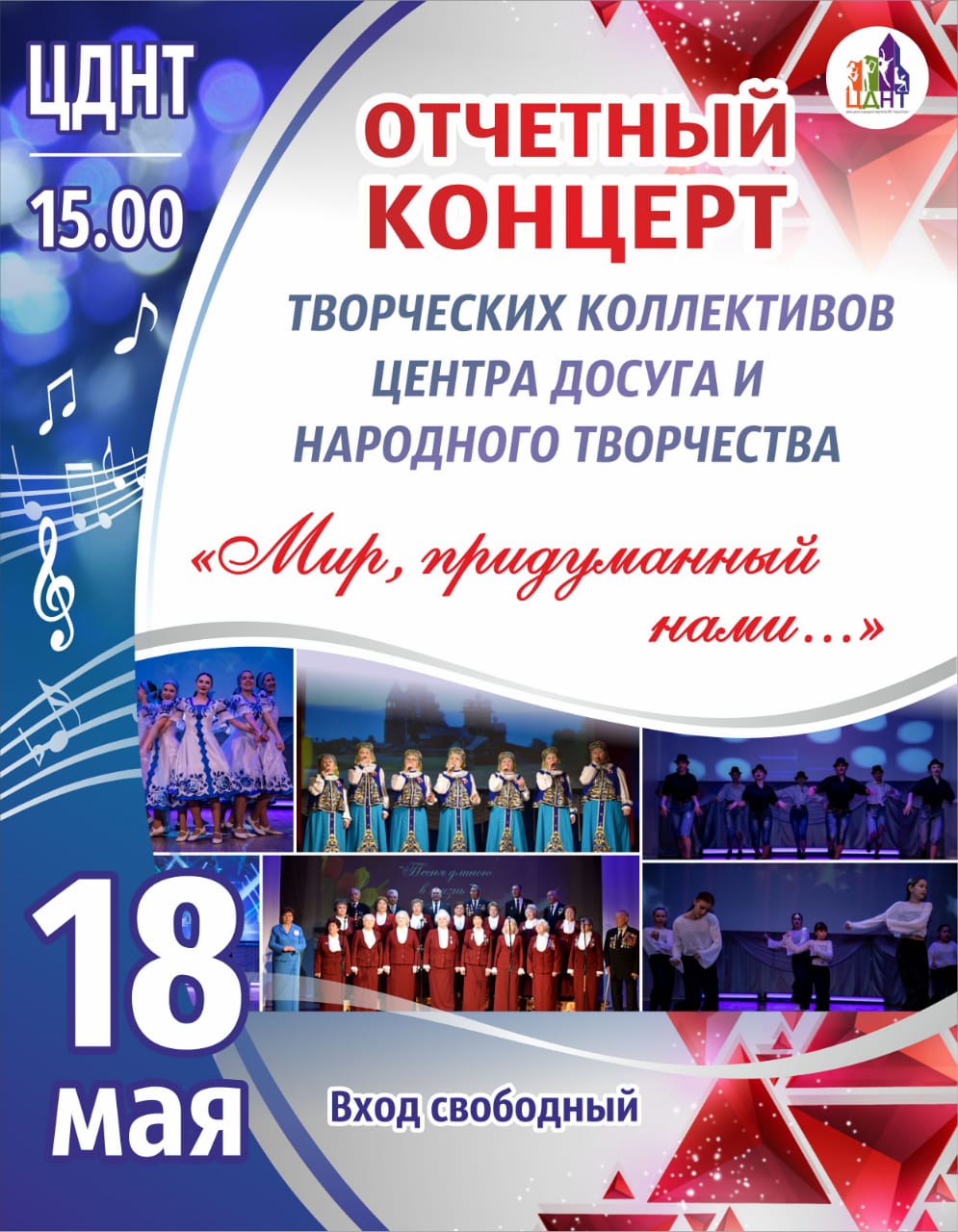 18 мая в 15:00 приглашаем ленчан и гостей города на отчётный концерт творческих коллективов Центра досуга и народного творчества «Мир, придуманный нами...».