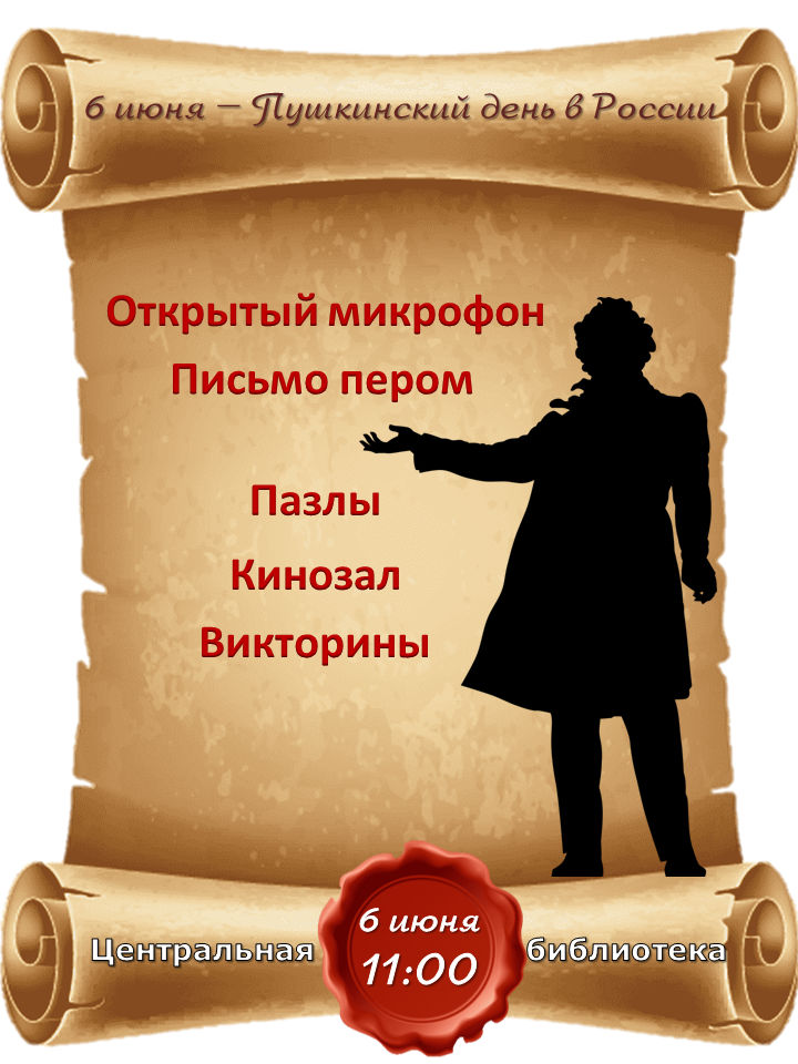 6 июня Центральная библиотека приглашает ленчан отметить Пушкинский день в России!
