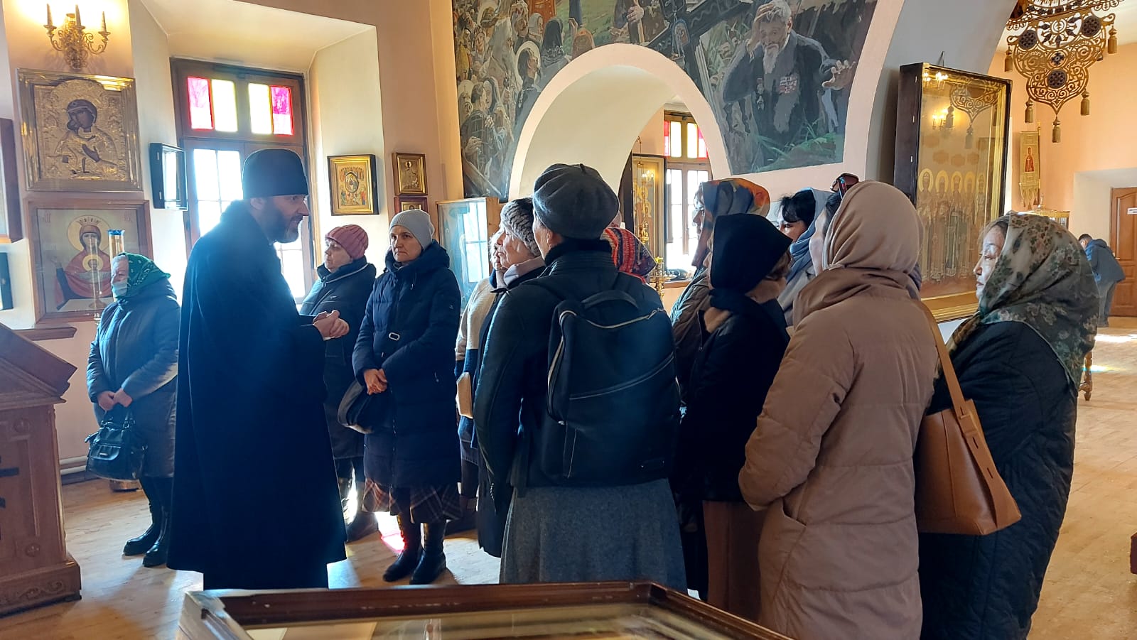 Паломничество по святыням города началось в Преображенском кафедральном соборе. Священник показал посетительницам убранство храма, а также могилу приснопамятного епископа Зосимы (Давыдова) за алтарной частью собора.