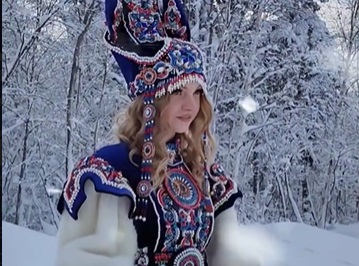 На фоне зимней съемки девушка напомнила Снегурочку. Ее наряд выглядит богато и оригинально, привлекая внимание к культурным традициям и искусству народного костюма. Видеозапись демонстрирует не только красоту девушки, но и великолепие природы, окружающей ее.