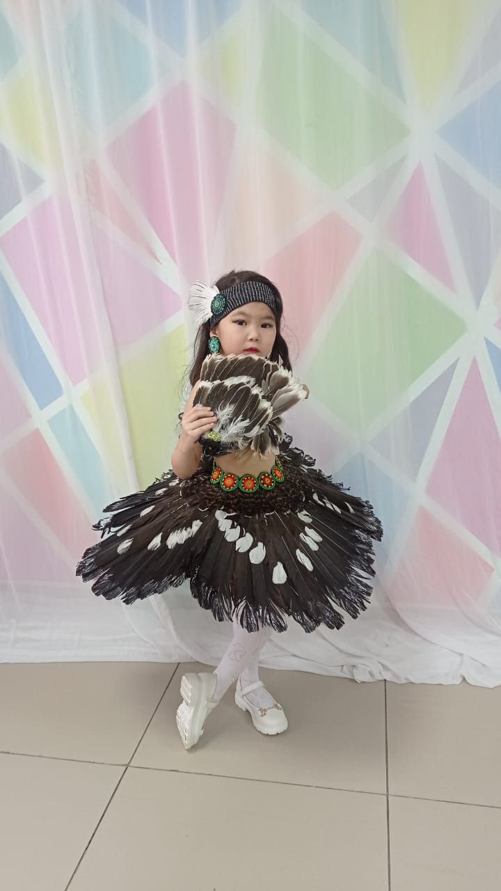 Для костюма использовались хвосты таких северных птиц как глухарь, гусь и рябчик. В этом наряде шестилетняя Ксюша Винокурова приняла участие в конкурсе «Краса Колымы», где стала победительницей в номинации «Маленькая модница», сообщает тгк @kolnews_zyr @ulusmedia