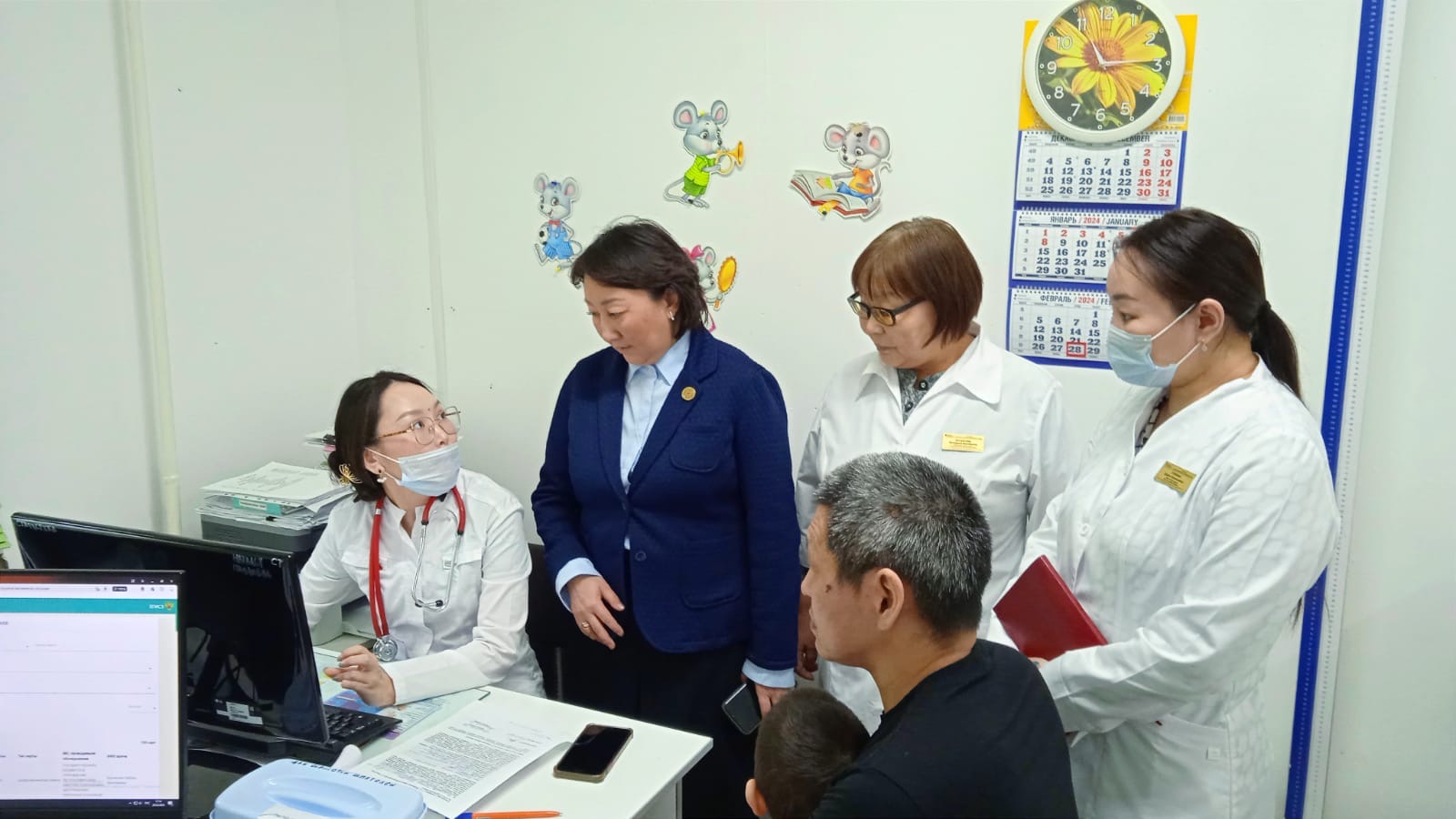 Комиссия Минздрава в педиатрическом кабинете с главврачом Назаром Петровым (первый слева)